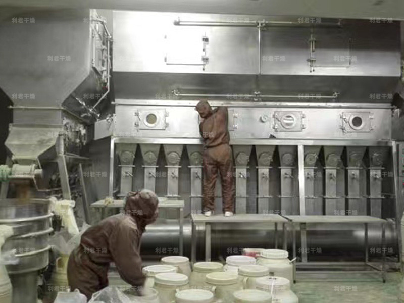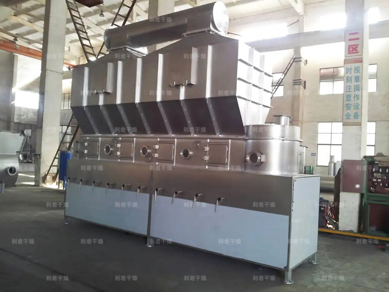 潔凈的熱風(fēng)經(jīng)閥板分配進(jìn)入床體內(nèi),從加料器進(jìn)入的濕物料被熱風(fēng)形成沸騰狀態(tài)。由于熱風(fēng)與物料廣泛接觸,增強(qiáng)了傳熱傳質(zhì)的過程,因此在較短時(shí)間內(nèi)就可干燥。如用連續(xù)型,物料從床體的一頭進(jìn)入,經(jīng)過幾十秒至幾分鐘沸騰干燥,自動(dòng)從床體另一頭流出。本設(shè)備一般進(jìn)行負(fù)壓操作。