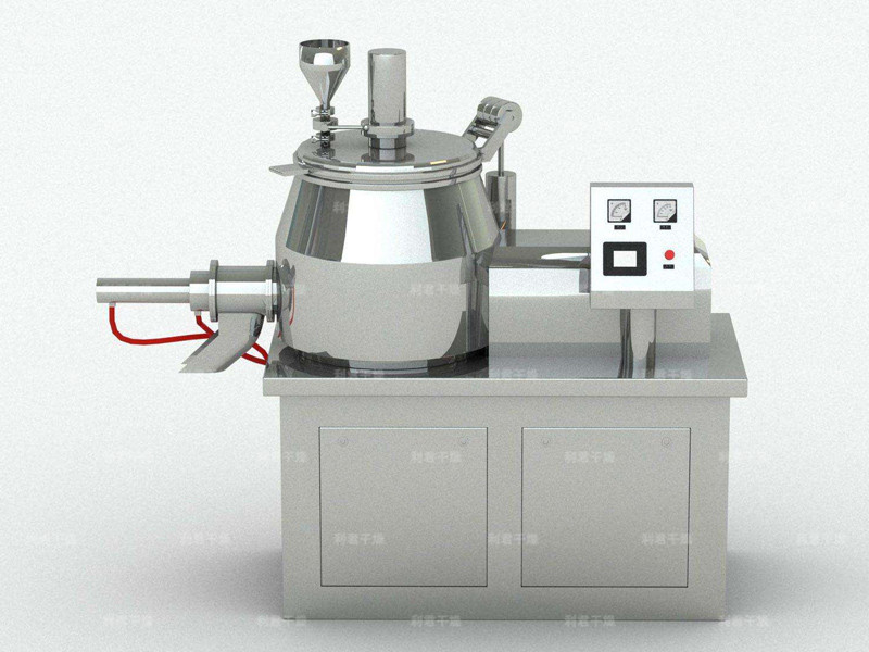 粉體物料與粘合劑在圓筒形容器中由底部混合漿充分混合成濕潤軟材,然后由側置的高速粉碎槳切割成均勻的濕顆粒。